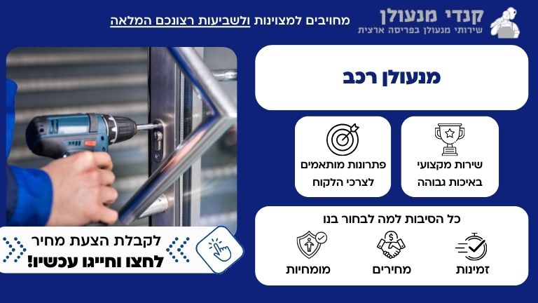 - שירותי מנעולנות ופריצה: מנעולן רכב מקצועי, החלפת צילינדרים ומנעולים, שכפול מפתחות ועוד.
